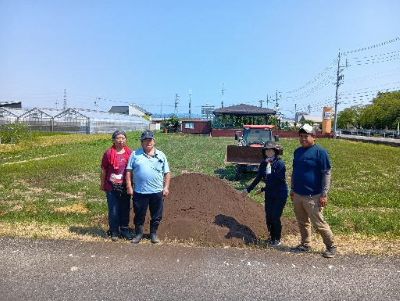 畑の土壌改良には、支店管内の農事組合法人森岡養豚から出た豚ぷんを発酵させた堆肥を活用する。有機質肥料として土に混ぜることで、化学肥料に頼らず、自然の恵みを生かした野菜作りを目指す。耕起作業には、稲作を手がける有限会社合渡営農夢クラブが参加した。支店近くの畑15アールに、トラクターを使って堆肥約3トンをすき込んだ。